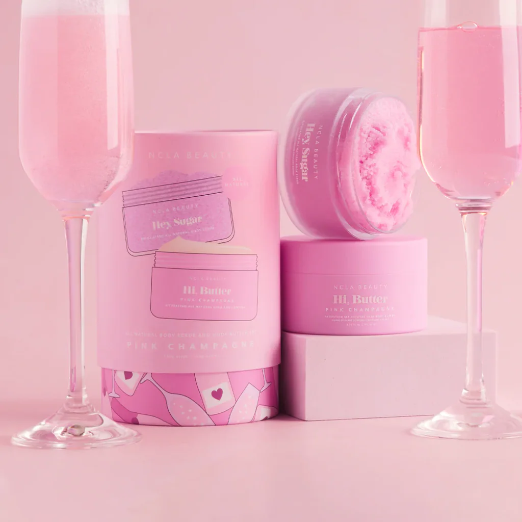 Luonnonkosmetiikan vartalonhoitosetti pirskahtelevalla ja makealla pinkin kuohuvan tuoksulla! Sisältää vartalokuorinnan ja vartalovoin, jotka tekevät ihosta ihanan sileän vain minuuteissa.